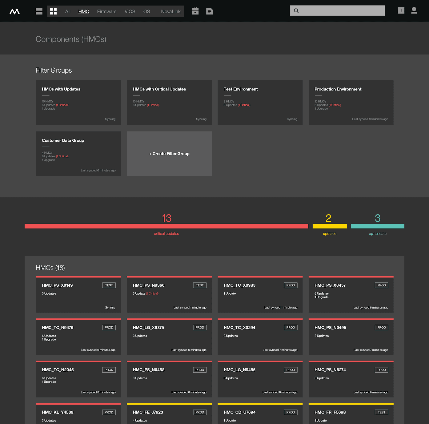 I built the high-fidelity prototypes. Fully coded, 100% functional, with backend databases simulating real data calls. The color palettes came from the server environments, reds, yellows, and greens from status lights, grays from the rack hardware, so the interface felt native to the people using it.