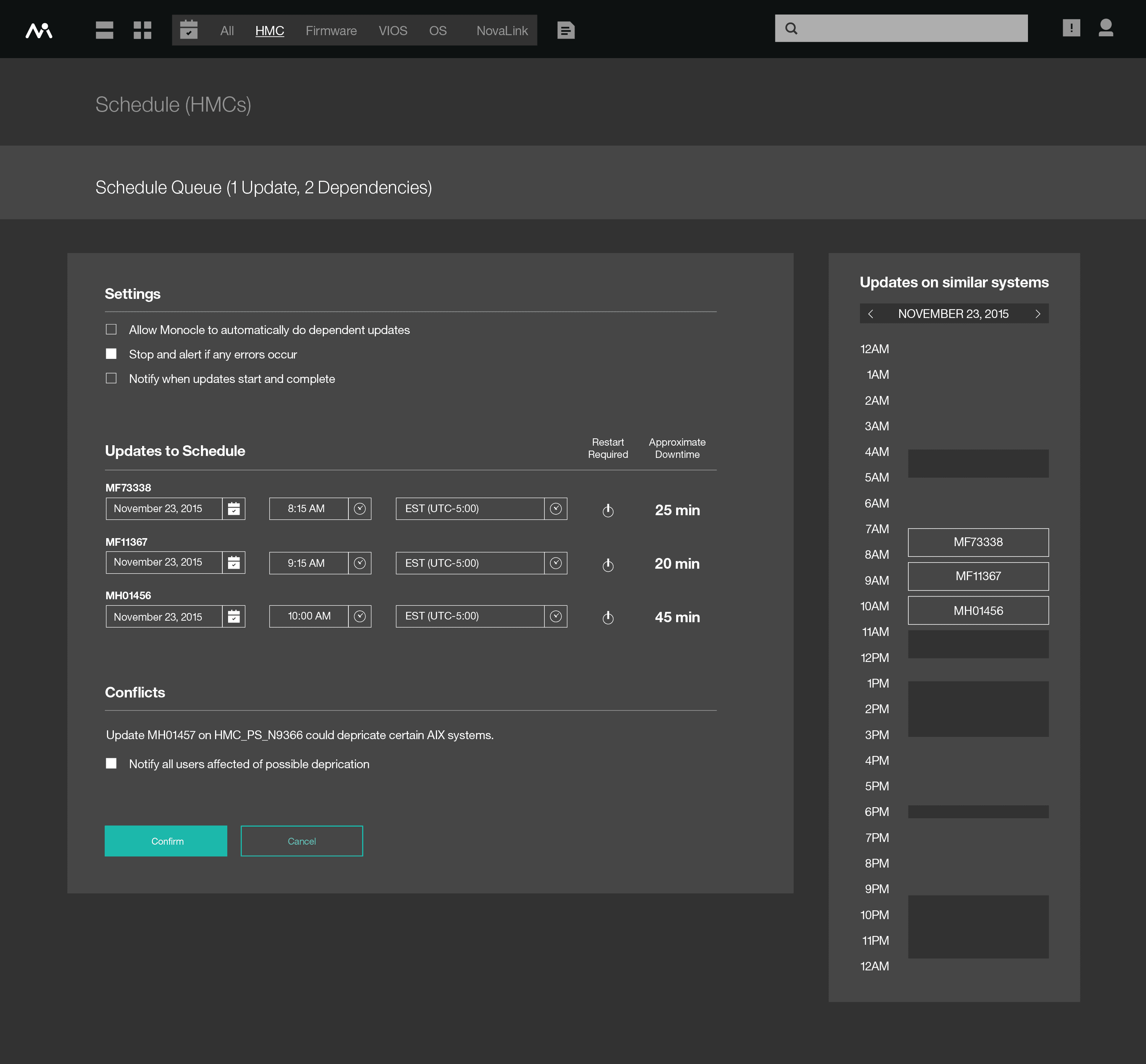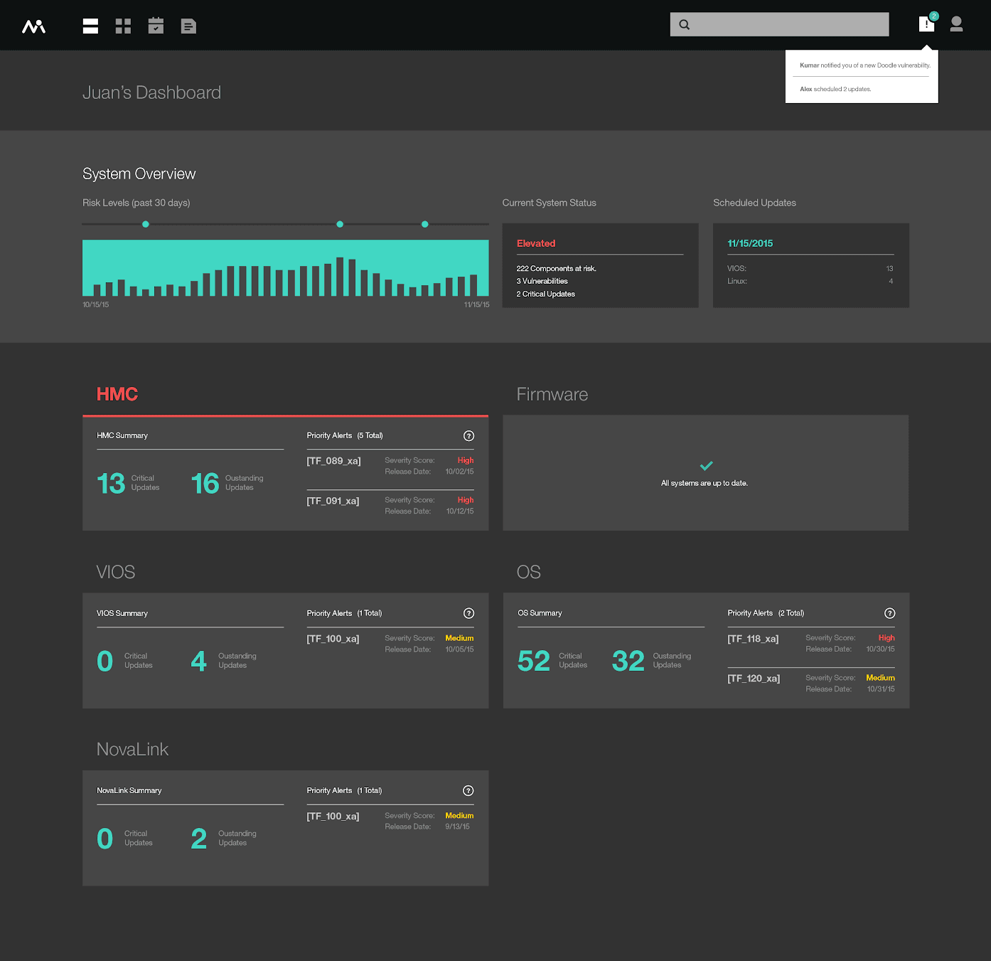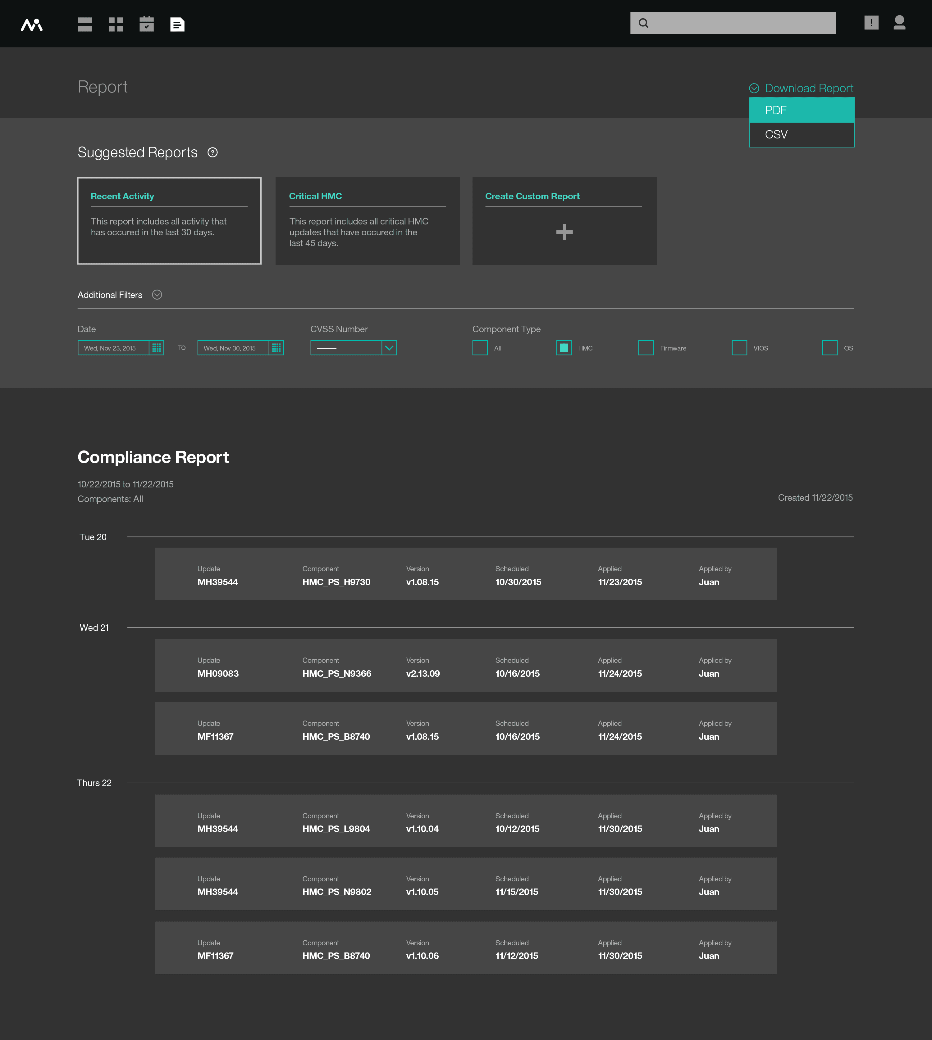 We reframed the product around three principles that came directly from the research. Every screen had to answer "what do I need to do right now?" The system administrator patching servers and the IT manager proving compliance had different needs, so the product had to serve both without forcing either into the other's workflow. And administrators managed hundreds of endpoints across multiple component types, so the product couldn't require them to update one machine at a time.
